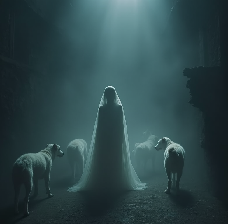 Il fantasma della Dama Bianca appare lungo gli spalti del castello, accompagnata da cani spettrali, e scompare quando arriva nei pressi della fontana posta sotto le mura. Può spaventare chi la vede, ma anche uccidere le sentinelle di guardia.