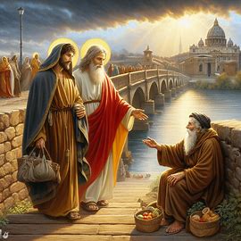Il Signore e San Pietro passando un ponte sull’Isonzo incrociano un vecchio mendicante che prega. San Pietro ne ha compassione, ma il Signore passa oltre.Più avanti trovano un gruppo di giovani che cantano villotte sotto una finestra.San Pietro vuole proseguire, ma il Signore si ferma e li benedice. Poi spiega a Pietro che il mendicante ha compiuto molte cattive azioni, e crede con qualche preghiera di rimettere le cose a posto. I giovani invece cantano per allegrare una fanciulla triste, e la loro condotta gli è molto più gradita.